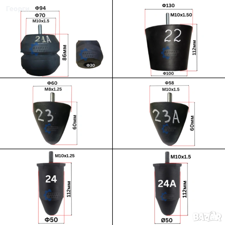 15. Буферен тампон М10 х Ф95 х Ф82 х 121мм - 22,50 € / 44,01 лв
