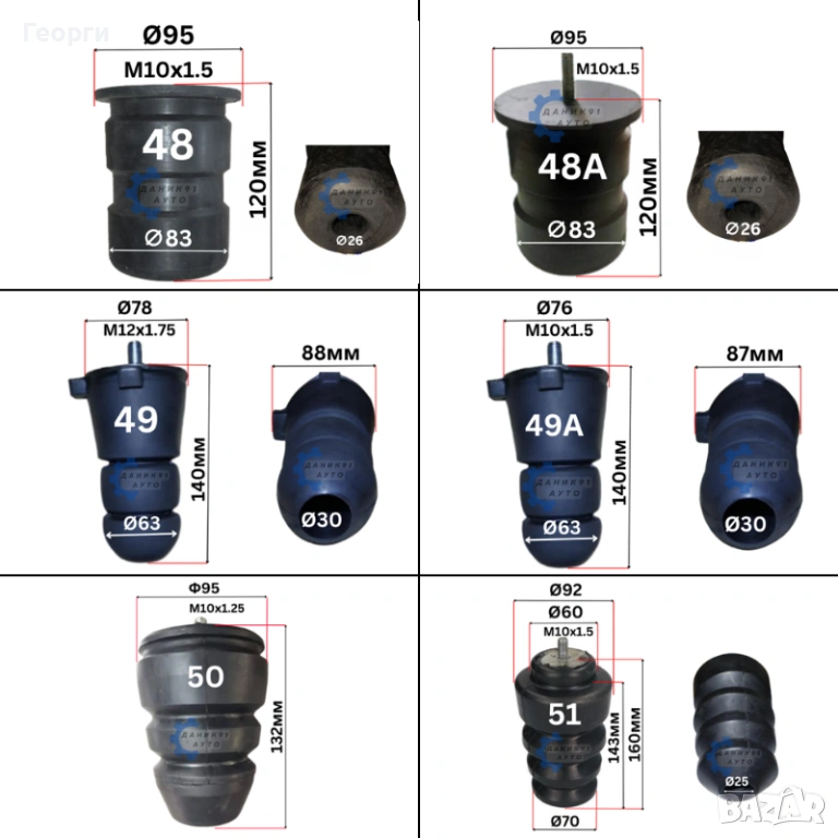 50. Буферен тампон М10х1.25 х Ф95 х 132мм - 21,47 € / 41,99 лв