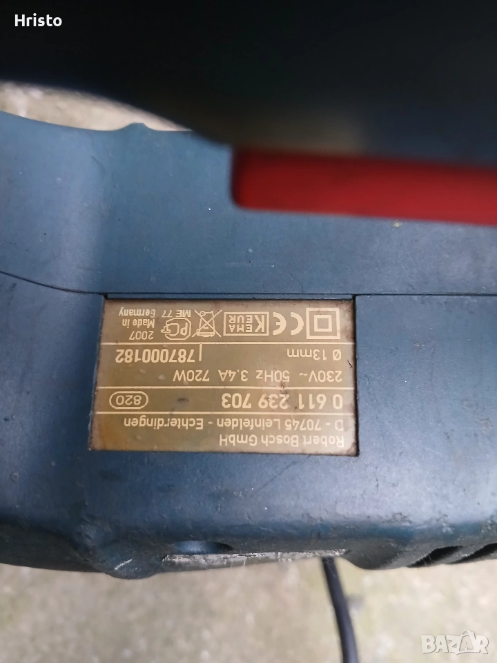Перфоратор Бош 720W. Две позиции на работа Малкия захват SDS плюс. Работи идеално. Силна компресия.Цената не се коментира.