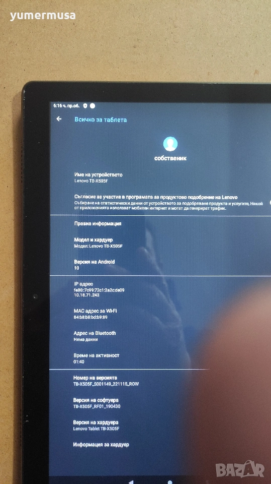 Предлагам технически,и козметично изключително запазен таблет Lenovo Tab M10 HD.Със точност TB-X505F.Без драскотина където и да е било.Отлично работещ.Със доста издръжлива батерия.Със изтрити акаунти,и парола.Предлага се единствено със зарядно устройство.На коментари,и бартери няма да отговарям.Моля,разгледайте останалите ми обяви.Благодаря.