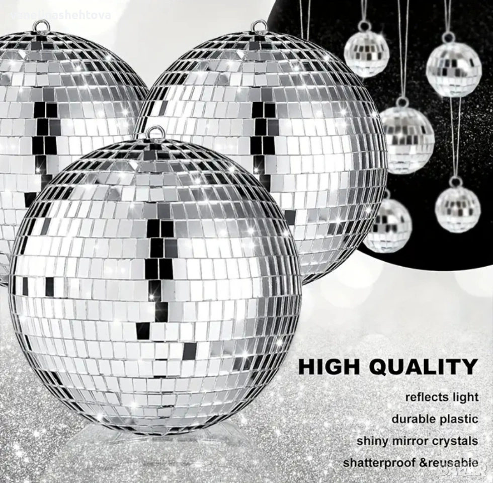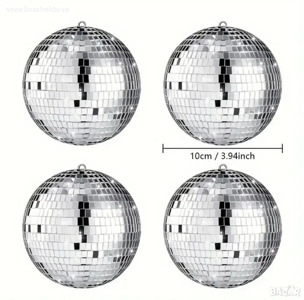 10 см. сребриста огледална диско топка топки за декорация на торта парти, снимка 1 - Други - 53895486 10 см. сребриста огледална диско топка топки за декорация на торта парти, снимка 2 - Други - 53895486 1/2