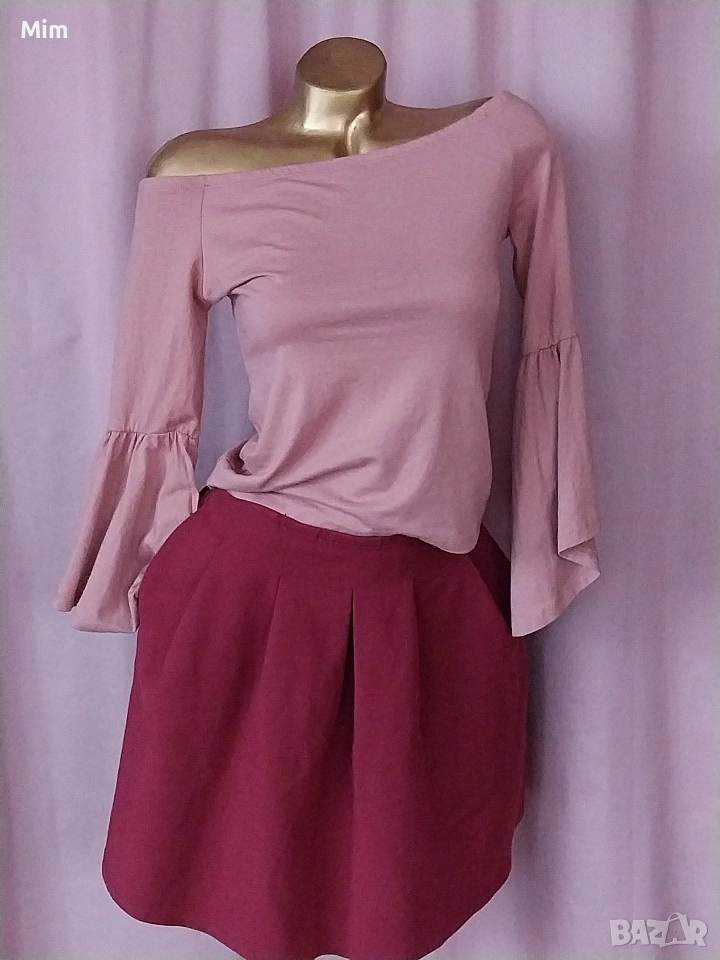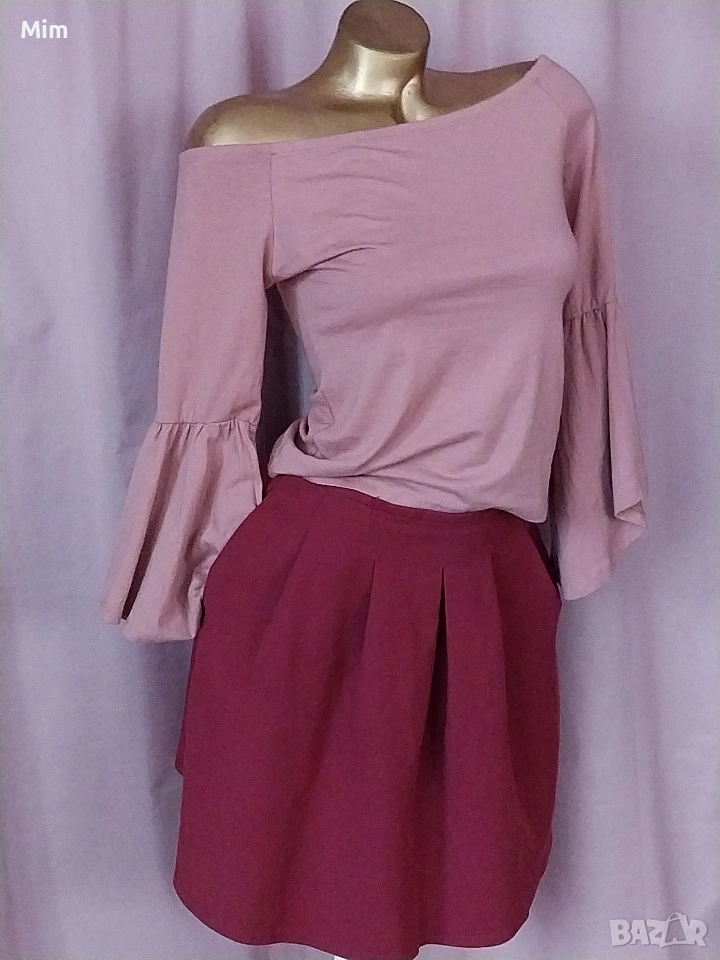 4-М Розова еластична блуза с дълъг ръкав силно разширен в долната част