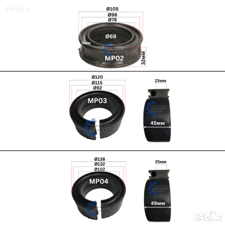 03. Тампон между пружина Ф115 х Ф92 х 23мм - два броя к-т - 9,20 € / 17,99 лв. ИЗЧЕРПАНИ