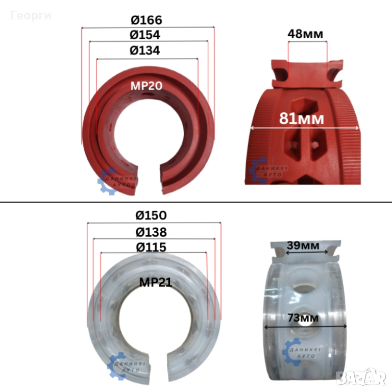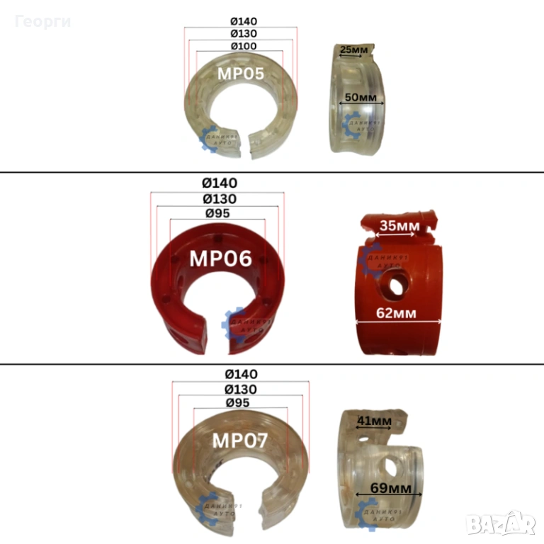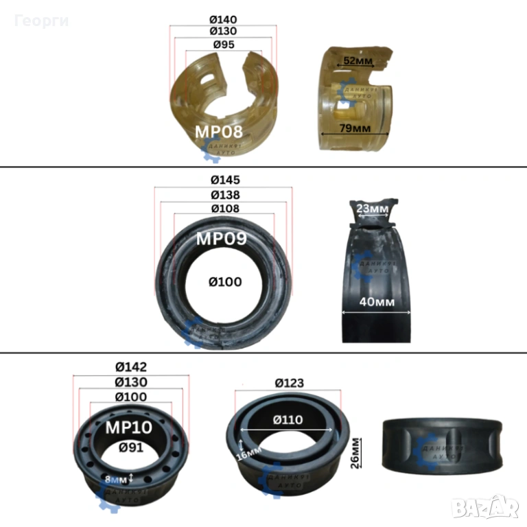 08. Тампон между пружина Ф130 х Ф95 х 52мм - два броя к-т - 20,45 € / 40,00 лв.