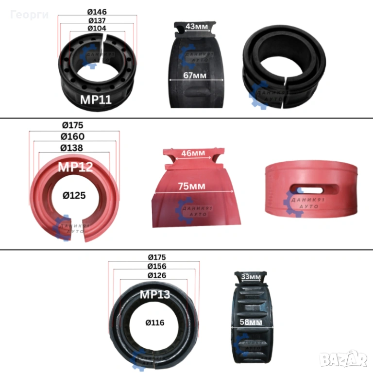 13. Тампон между пружина Ф156 х Ф126 х 33мм - два броя к-т - 20,45 € / 40,00 лв.