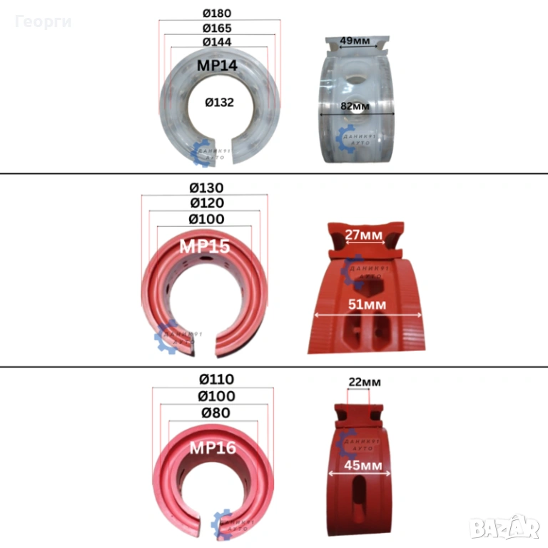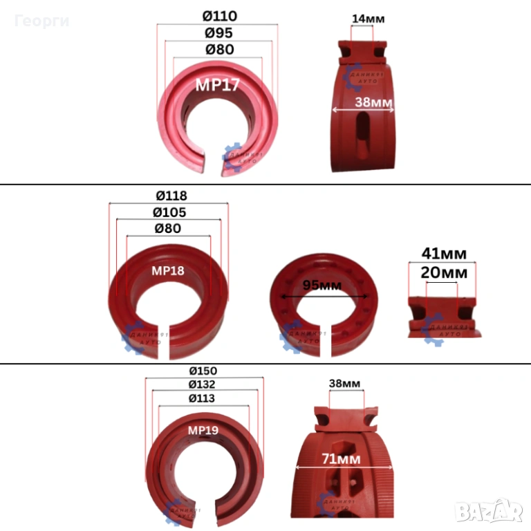 17. Тампон между пружина Ф95 х Ф80 х 14мм - два броя к-т - 13,29 € / 25,99 лв.
