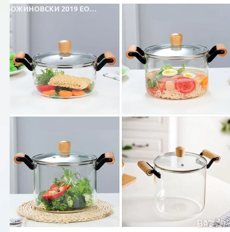 Прозрачен дизайн: Това е красив стъклен съд за готвене, при който лесно наблюдавате процеса на готвене, без да е необходимо да махате капака.