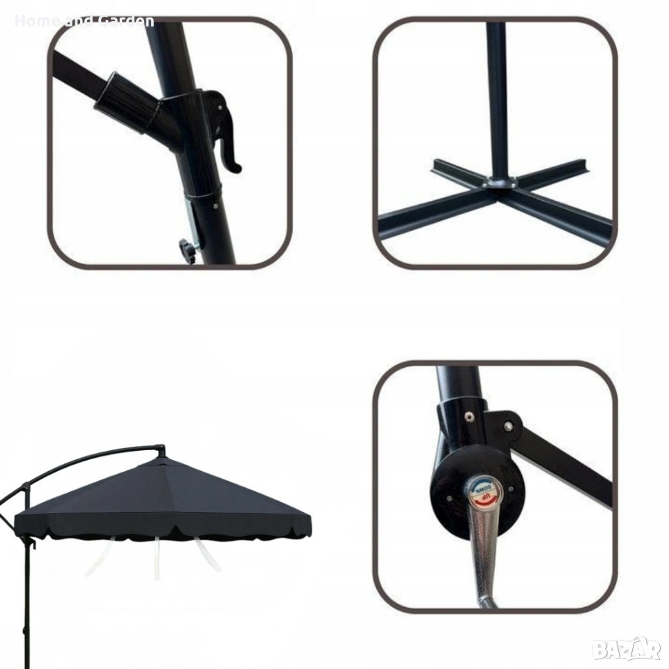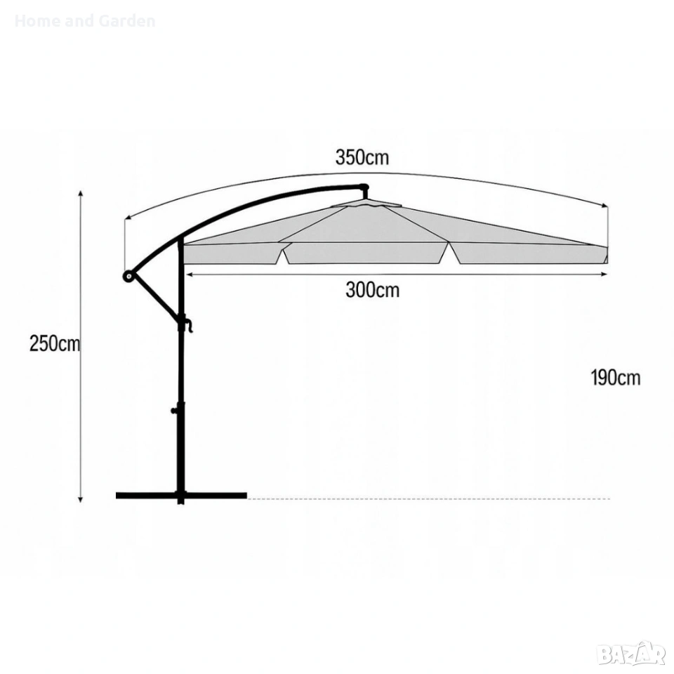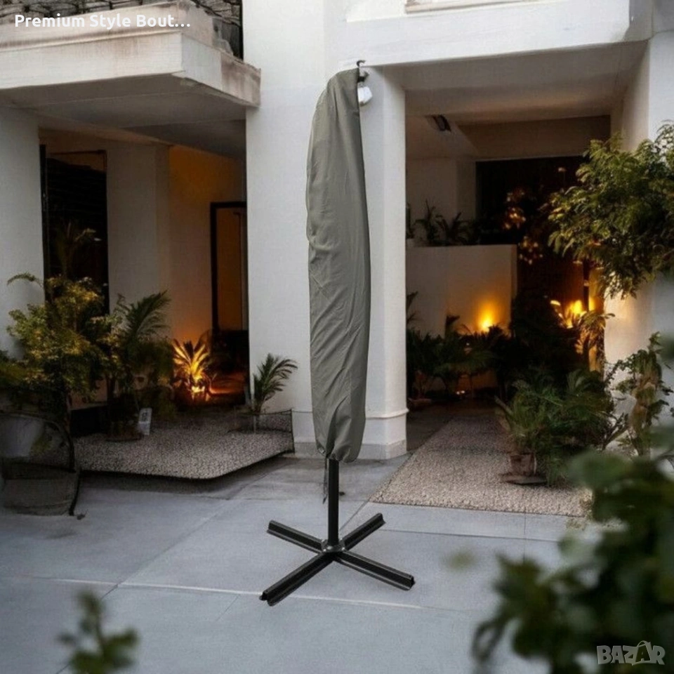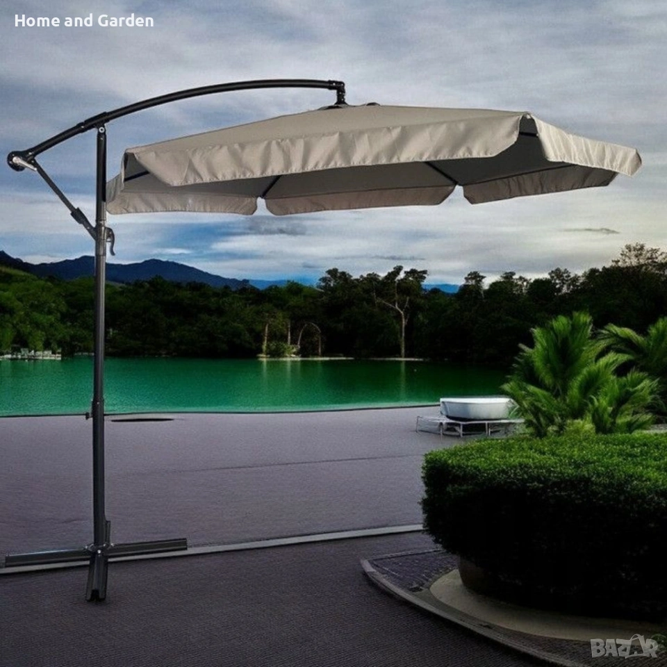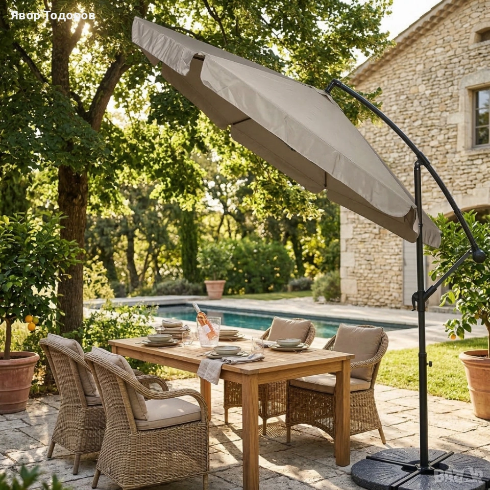 Идеален за тераса, градина или басейн — осигурява широка сянка и защита от слънцето през целия ден.
