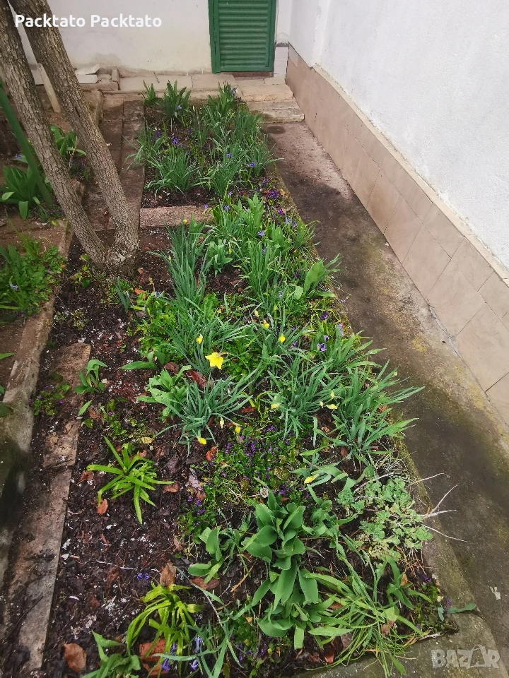 Целия имот до водата е терасиран и с бетонни стълбища за достъп. Няколко реда с лозе и няколко плодни дръвчета са в градината, а около къщата градините са зацветени с лалета, нарциси, рози и билки.