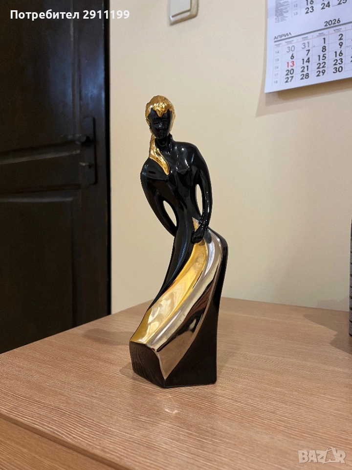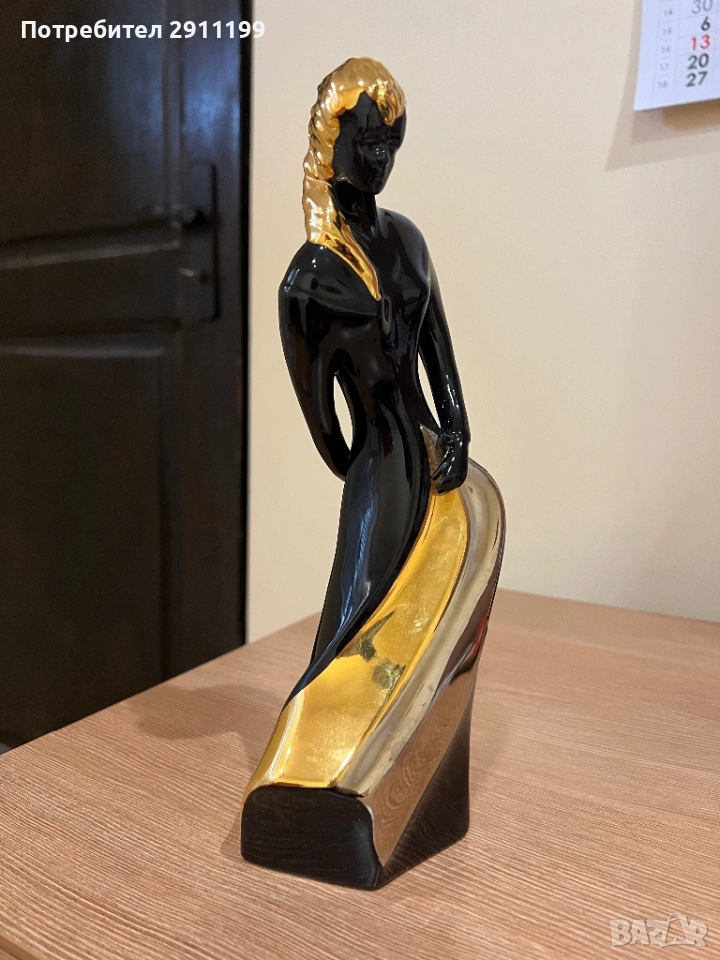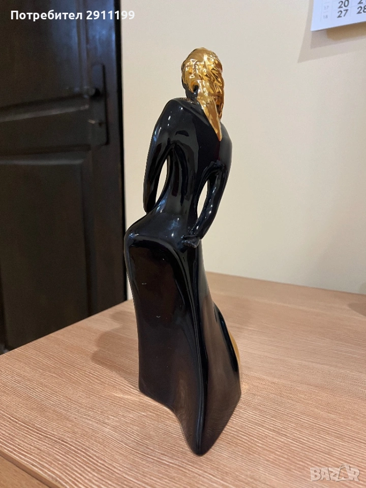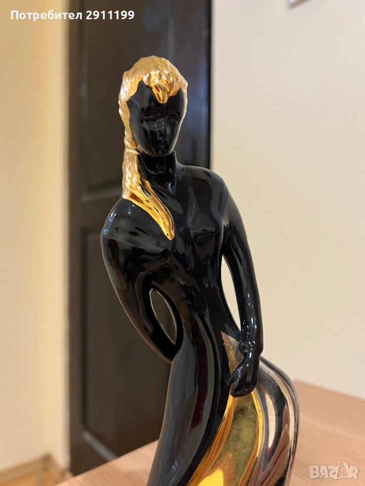 подписана. Висока е 28 см. Черен и златист