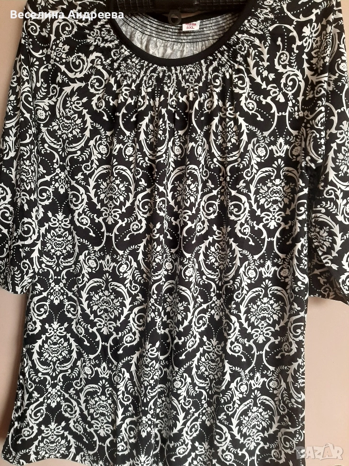 Дамска блуза 3/4 ръкав. 5ХЛ. Черно-бяла. 95%памук, 5%ликра. Цена - 7,67€ (15,00лв.)