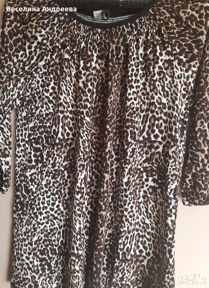 Дамска блуза, 3/4 ръкав. Леопардова шарка - 3ХЛ. 95% памук, 5% ликра. Цена - 7,67€ (15,00лв.)