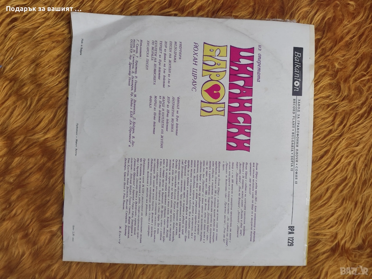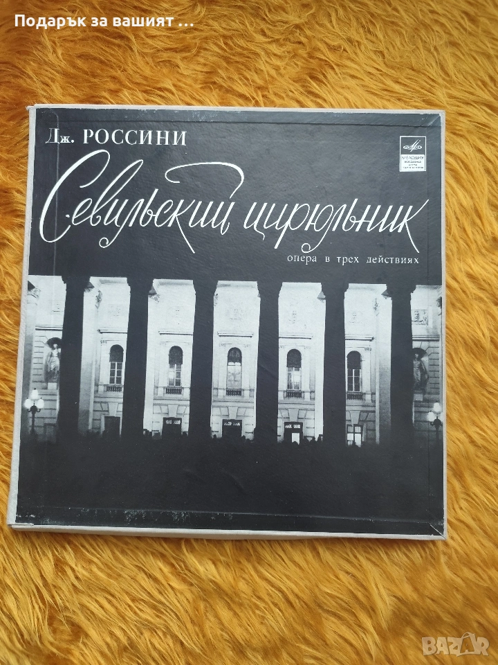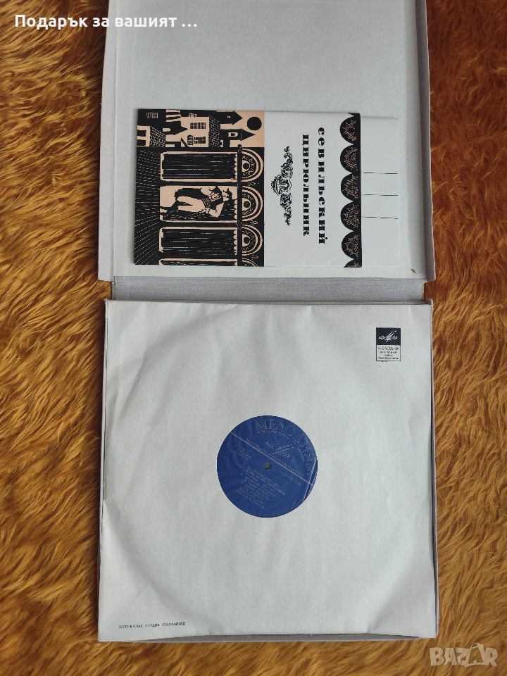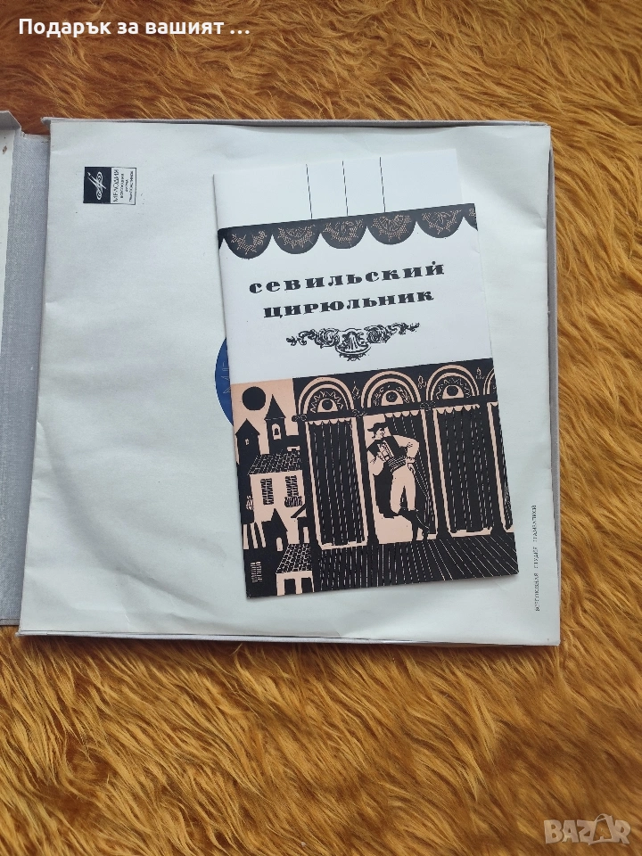 Това е винилова грамофонна плоча с операта „Севилският цирюльник“ от Джоакино Росини.