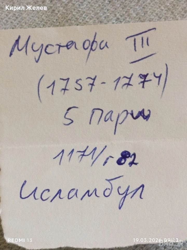 Сребърна монета 5 пари 1171/82г. Османска Империя Султан Мустафа трети Истанбул 54255 → Обява 53896249
