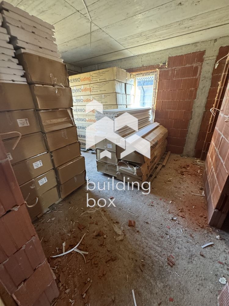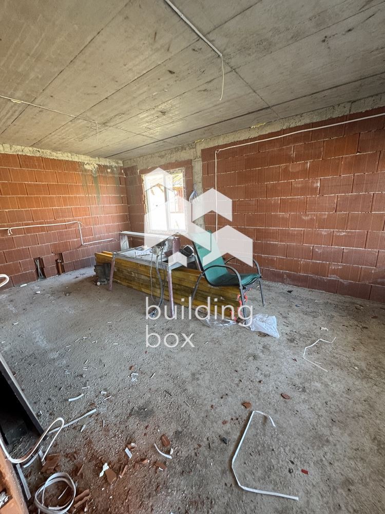 Първи етаж: просторно входно антре ,хол трапезария и кухня с излаз на веранда ,три спални като родителската е с собстева баня и гардеробна ,семейна баня.Под покривно пространсво,което може да послужи за