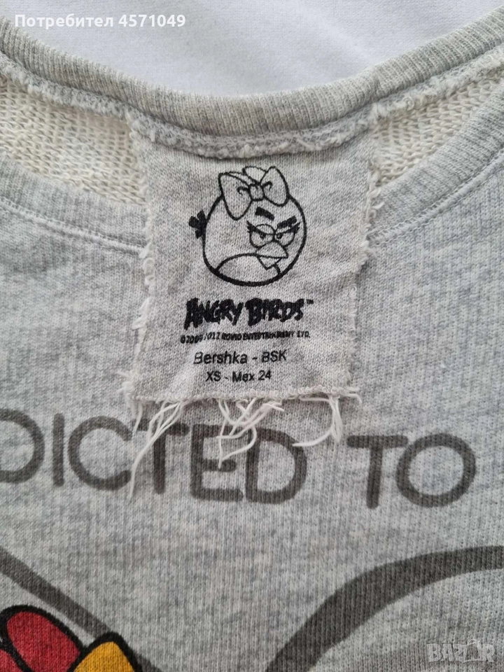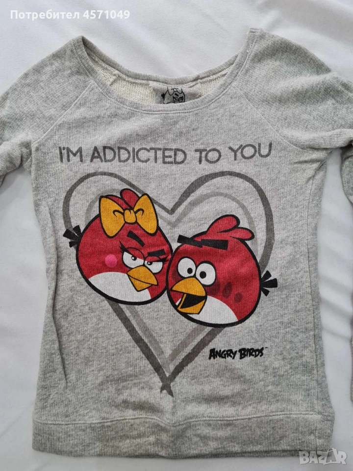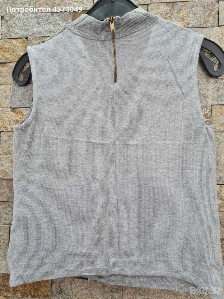 Сив топ в златисто и сребристо Zara, сив елек с лек блясък и блуза Bershka Angry Birds.