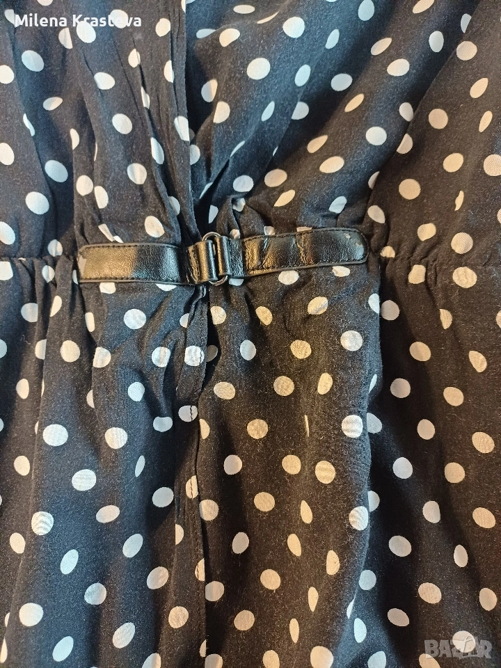 Дължина 90 см. Талията е с ластик. Има декоративен кожен орнамент.