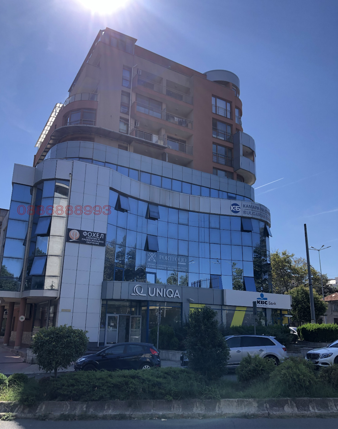 На первом этаже здания, прямо под офисом, расположен центральный офис банка UBB.