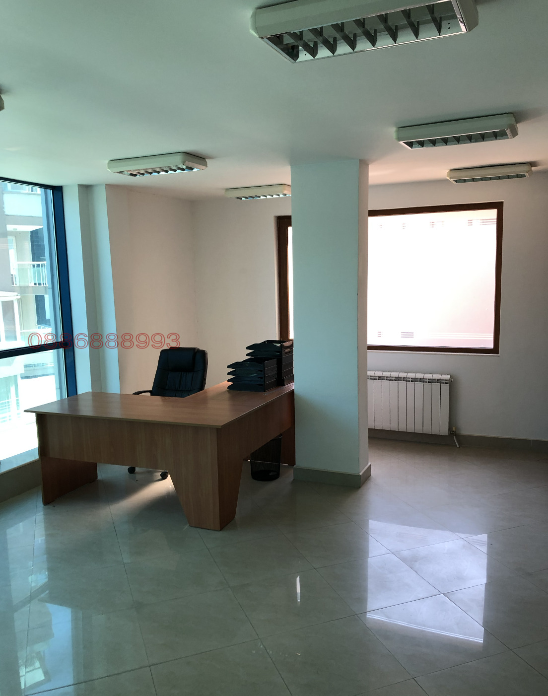 Офис обновл н после ремонта и оснащ н новыми жалюзи на окнах, тремя новыми столами и стульями из IKEA, складским помещением с полками для документов, а также интерактивной стеной для презентаций и письма, выделенной в отдельной комнате. Установлен мощный кондиционер Carrier.