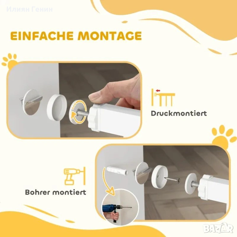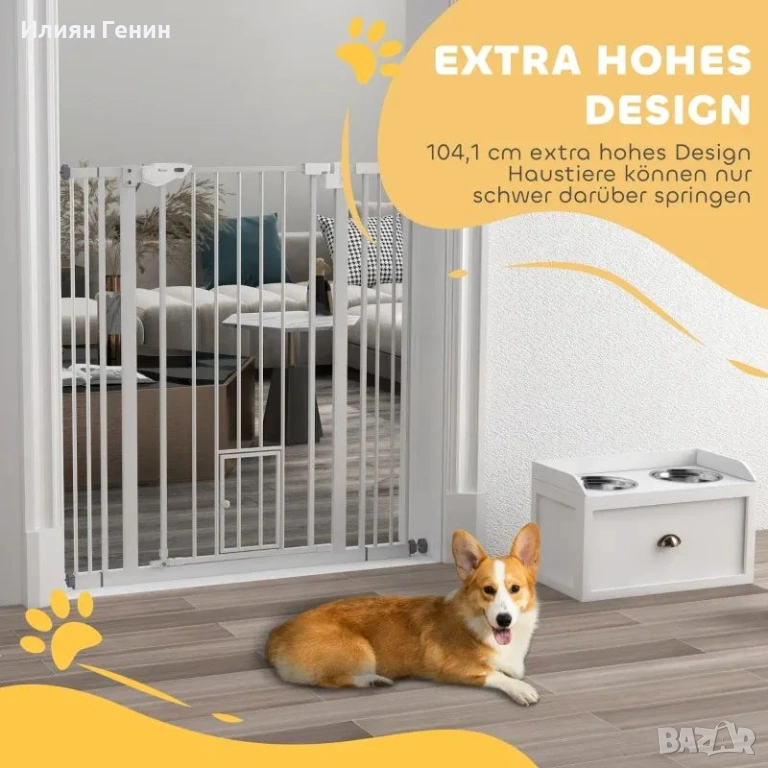 Здрава и сигурна: Тази преграда за домашни любимци е със стоманена рамка, което я прави изключително здрава и издръжлива. Повърхността на предпазната преграда без пробиване е обработена с безоловно покритие, за да се гарантира безопасността на вашите космати приятели.