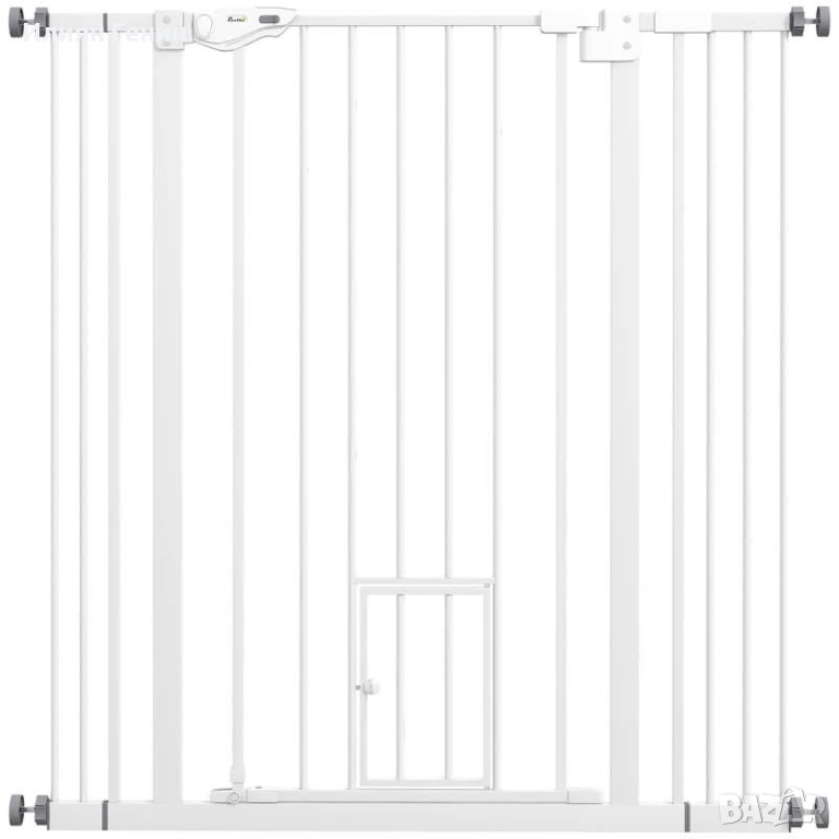 Врата за кучета PawHut, двойно заключваща се, самозатваряща се врата, височина 104 см, стомана, бяла - 60.00 €.