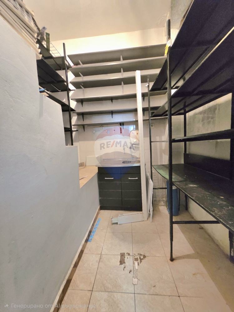 - на ниво сутерен се намира складово помещение /60кв.м./, където има втори вход, който може да се използва за товаро-разтоварна дейност на стока. Също така има изградена хладилна камера за съхранение на хранителни продукти