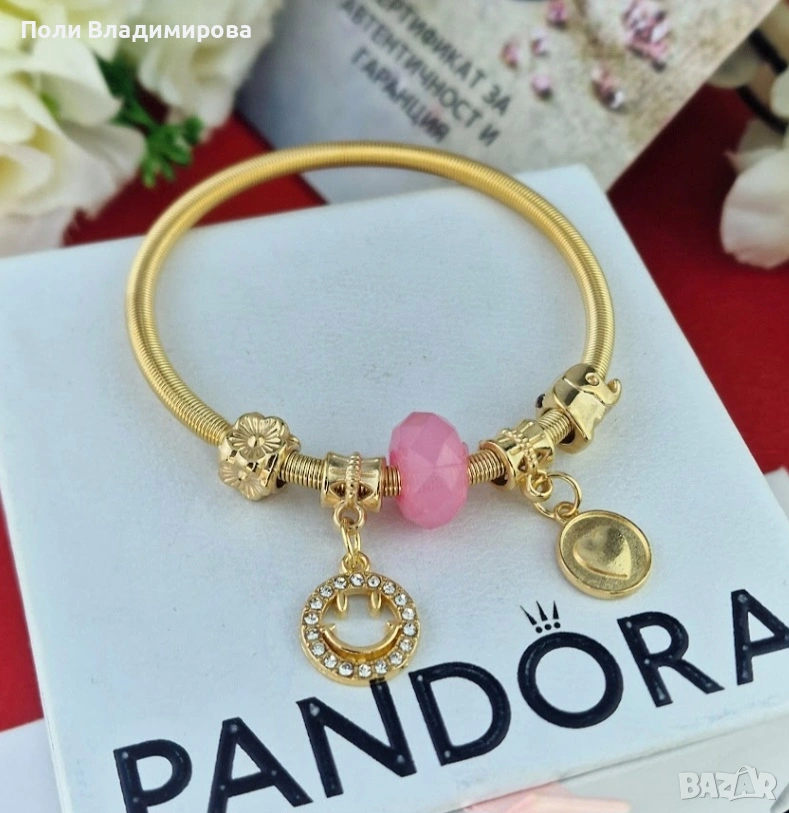 Гривна “Pink Smile” Цена: 21,49лв. Сладко розово мънисто + усмивка с камъчета = настроение на китката Нежна, женствена и супер “daily” – отива на всичко! Материал: медицинска стомана с 18 карата златно покритие