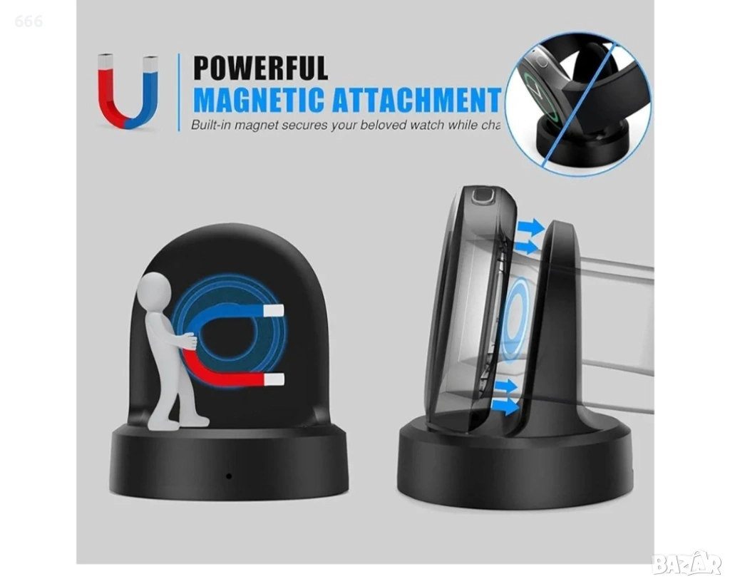 Зарядно устройство MYAYD, съвместимо със Samsung Gear S3/S2, докинг станция с USB кабел за зареждане → Обява 53897057