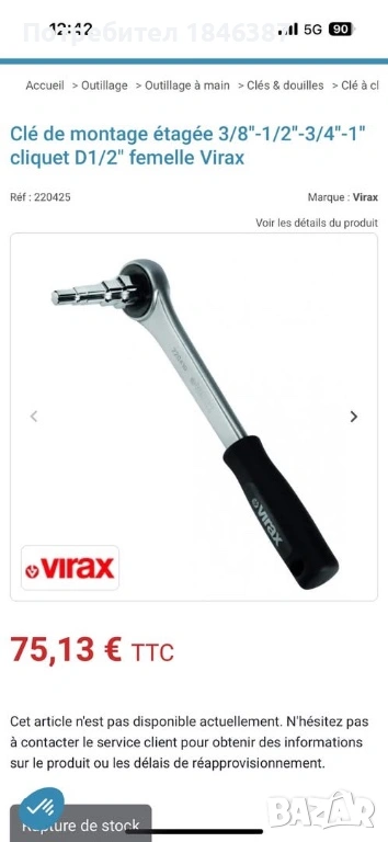 Тресчотка и многостъпален ключ Virax France → Обява 53897257