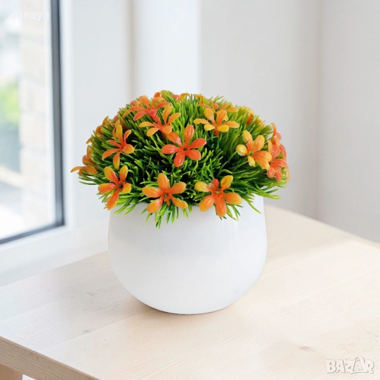 Създадено да изглежда красиво без никаква поддръжка, това декоративно цвете е идеалното решение за маса, бюро, кухня, рафт или офис. Ярките цветове и компактният размер го правят перфектен акцент, който веднага оживява интериора.