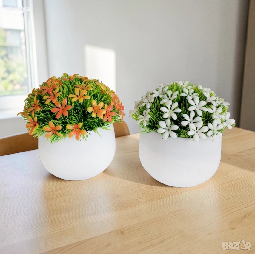 Декоративно цвете в бяла саксия, пролетна украса за дома – малък, но впечатляващ детайл, който носи свежест, уют и настроение във всяко пространство.