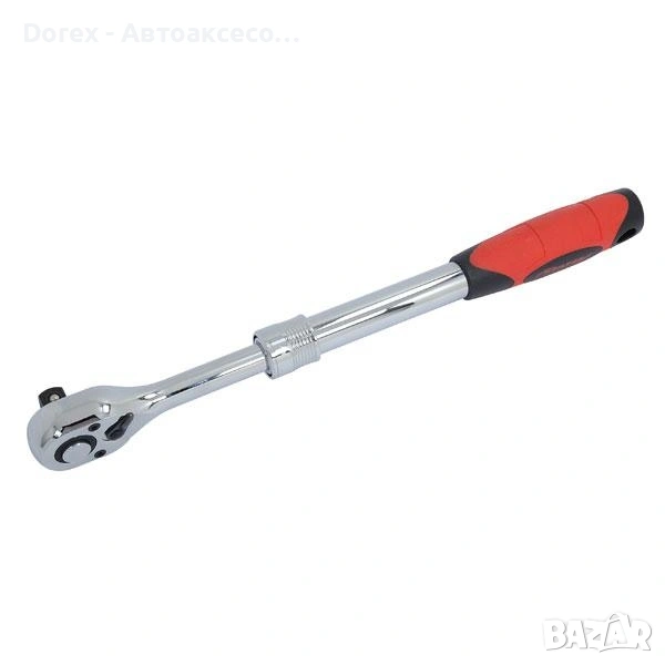 Висококачествена телескопична реверсивна тресчотка, подходяща както за професионална, така и за любителска употреба. Благодарение на регулируемата дължина, инструментът осигурява по-голямо удобство и по-добър контрол при работа в труднодостъпни места.