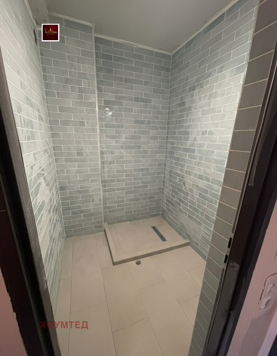 Банята е с положена хидроизолация и плочки, гранитогрес първо качество в коридора, складовото помещение и зоната на кухненския бокс. Монтирани интериорни врати, напълно изградена ВиК инсталация с водомери и спирателни кранове, бойлер 80L, поставени ключове и контакти. По желание финишна шпакловка срещу допълнително договаряне.