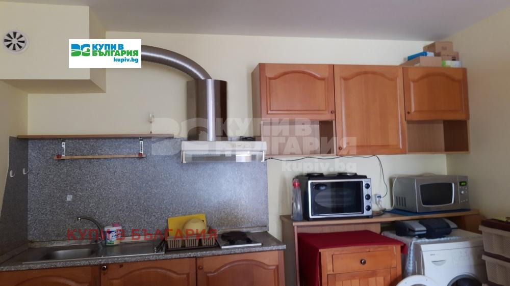 'Купи в България' ви предлага за продажба двустаен имот, разположен на първи жилищен етаж над гаражи съчетаващ практично разпределение с рядко срещано външно пространство.