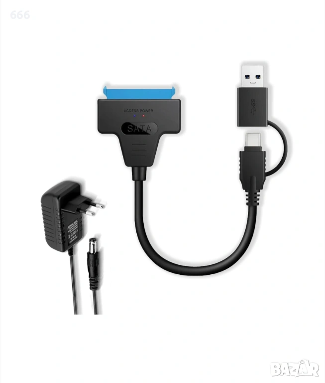 Адаптер USB 3.0 към SATA III 5Gb/s 2.5"/3.5" HDD, включва захранващ адаптер. USB 3.0 адаптерът е съвместим с 2.5 инчови / 3.5 инчови твърди дискове и SSD-та (HDD/SSD) и включва захранващ източник. Може да свързва SSD-та, HDD-та и оптични устройства (CD-ROM/CD-RW, DVD-ROM/DVD-RW, Blu-ray) към компютър, таблет, телефон, телевизор и други устройства чрез USB порта. USB 3.0 към SATA адаптерът ви позволява да свържете всяко 2.5" или 3.5" SATA устройство и HDD устройство към компютъра си чрез наличен USB порт – най-лесният начин да надстроите твърдия диск на лаптопа си чрез добавяне на външен SSD през USB 3.0. Много бързите скорости на трансфер на данни по USB 3.0 осигуряват скорости на прехвърляне на файлове до 5 Gbps за минимално време. Но ефективната скорост на предаване зависи от капацитета на свързания SSD HDD. Функционалност Възползвайте се от USB 3.0 съвместими лаптопи или настолни компютри за по-високи скорости на трансфер. Създайте външно решение за съхранение в движение за настолни компютри, лаптопи или Ultrabook компютри. Съвместим с всеки 2.5" или 3.5" твърд диск или SSD устройство на всеки компютър с USB, за миграция на данни или клониране на устройство. Архивирайте важни данни на външно устройство за съхранение. Извличане на данни от старо SATA и HDD устройство. Използвайте със SSD устройство за външно актуализиране на диска на лаптопа си чрез USB 3.0. Лесен за инсталиране Спецификации: Предаване на данни: SATA III до 5 Gbps, SATA II до 3 Gbps Поддръжка на твърд диск: до 10 TB Поддържани дискове: 3.5", 2.5", оптични устройства Plug and Play устройство – не са необходими допълнителни драйвери Съвместим с по-стари USB стандарти Поддържани операционни системи: Windows 98, SE, ME, 2000, XP, Vista, 7, 10 и MAC OS 9.X / 10.X, Linux, Android, iPad, iPhone