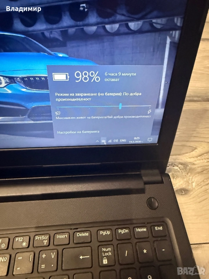 Лаптопа работи безпроблем,почистен и преинсталиран с нова термопаста,батерията държи около 3часа има си и зарядно