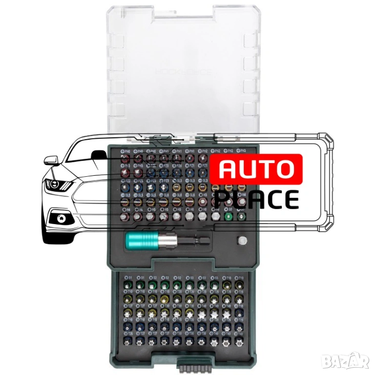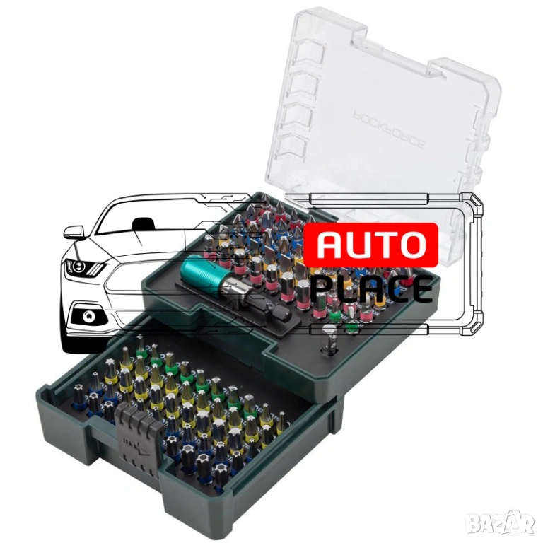 Професионален комплект битове 102 части на марката RockForce в удобна кутия за съхранение.