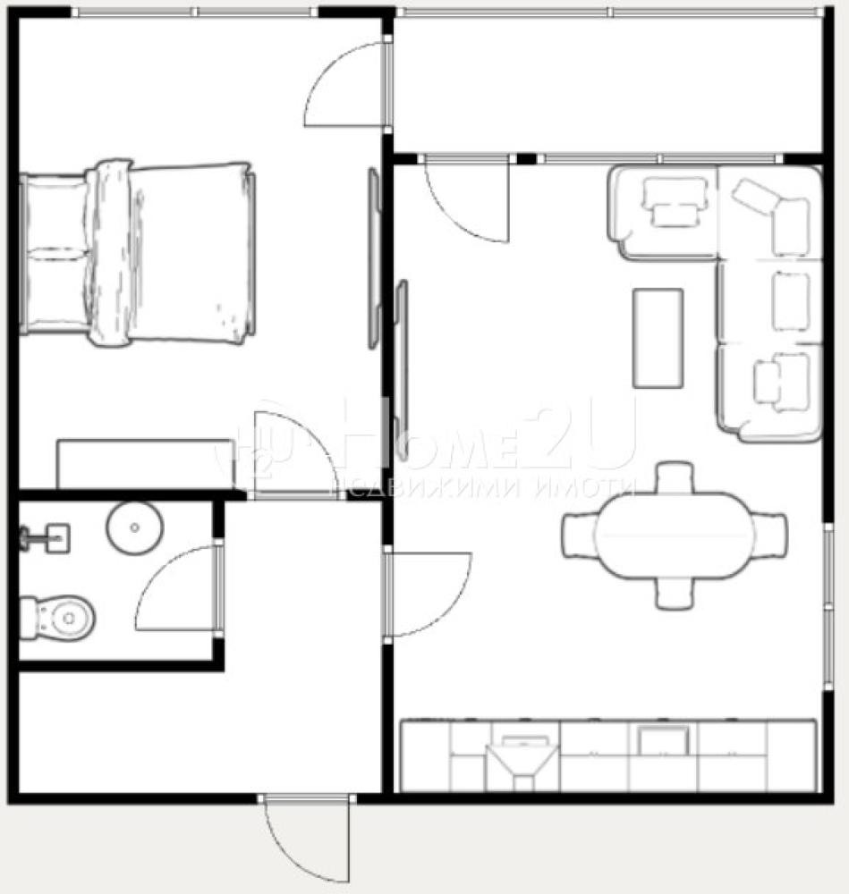 Жилището е с площ от 61 кв. м и е разположено на 4-ти етаж от общо 9. Има следното функционално разпределение: входно антре, дневна с кухненска част и трапезария, спалня, баня с тоалетна, мокро помещение и тераса с излаз от двете стаи.