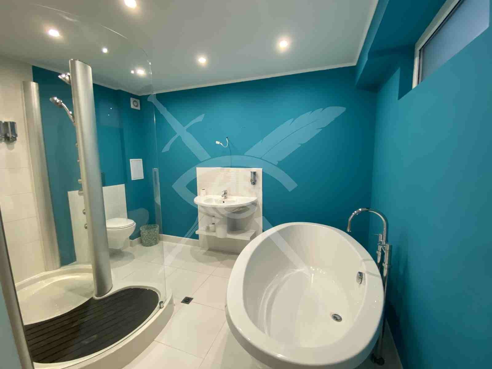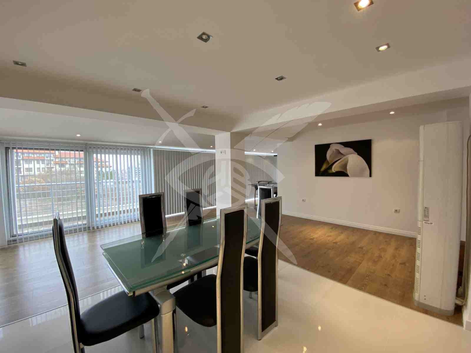 РАЗПРЕДЕЛЕНИЕ: Разполага с площ от 240кв.м., разгърната в следното функционално разпределение: антре, хол с кухненски бокс, трапезария, кабинет, гардеробна, две спални, две бани с тоалетна, две тераси.