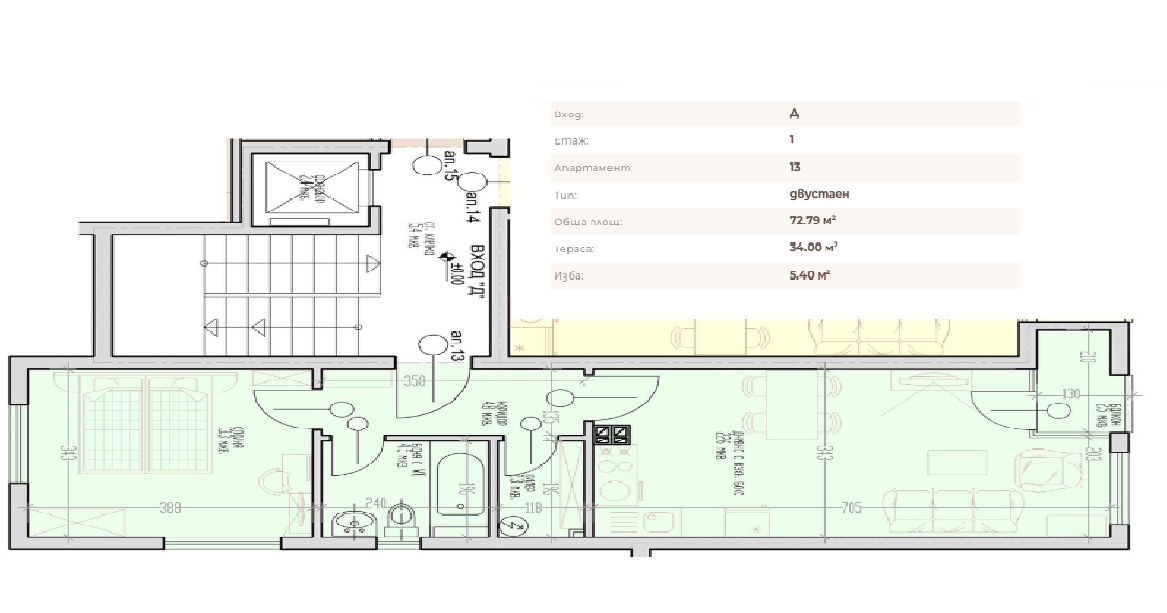Апартаменти с чиста жилищна площ: от 55 70 кв.м.