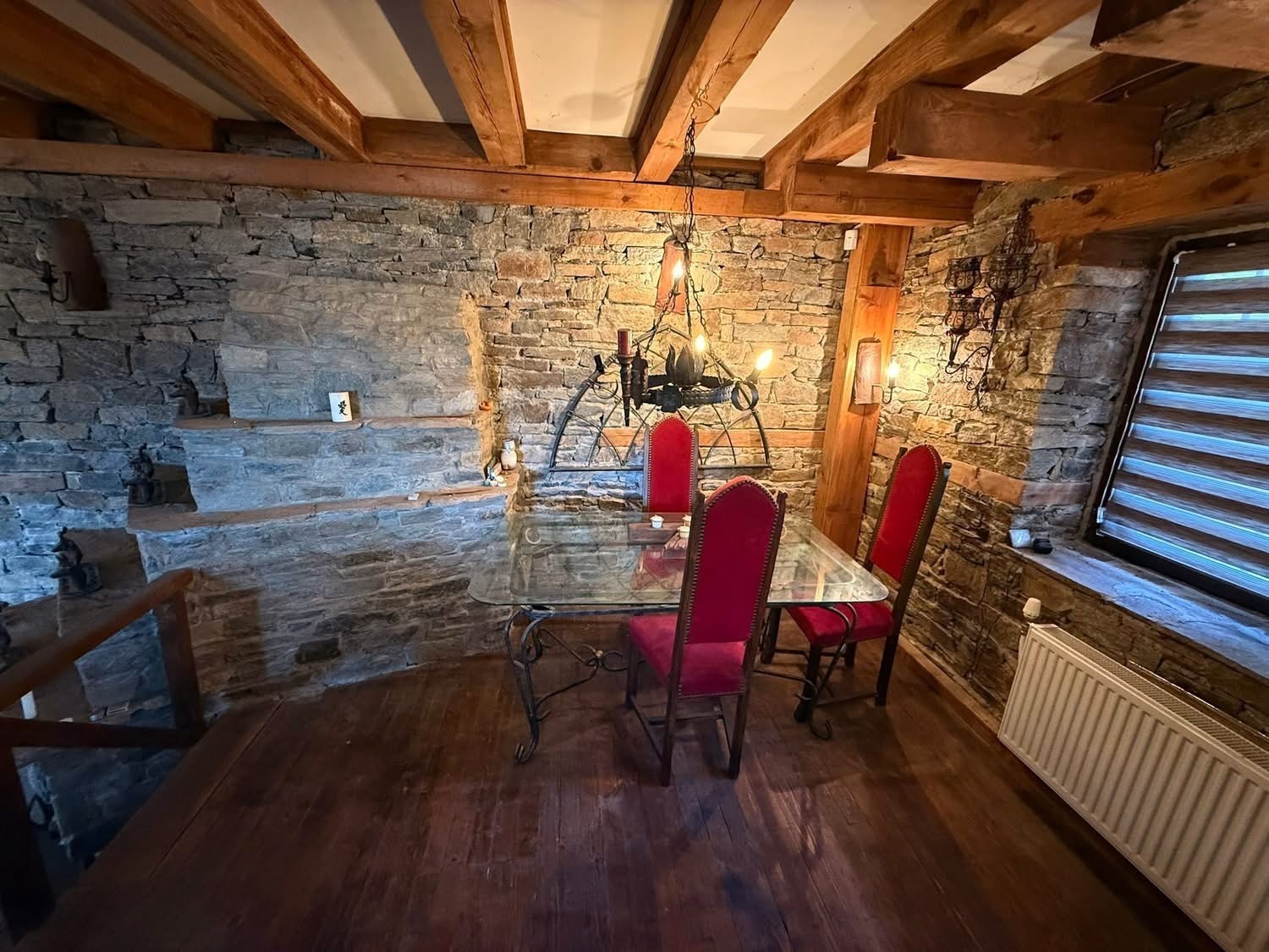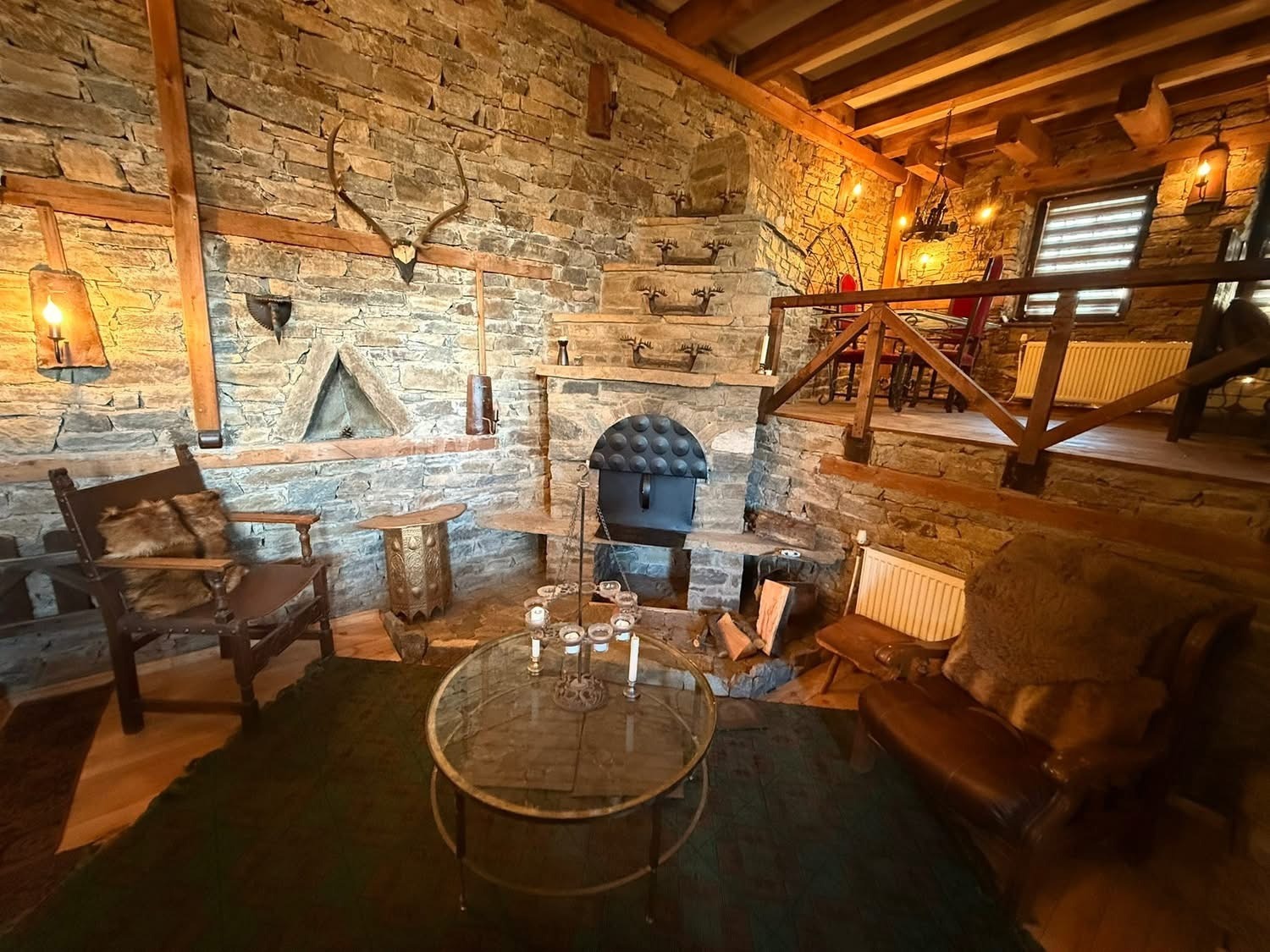 Сградата има вътрешна и външна камини за уют, които са на дърва, но се отоплява със силно парно на пелети.