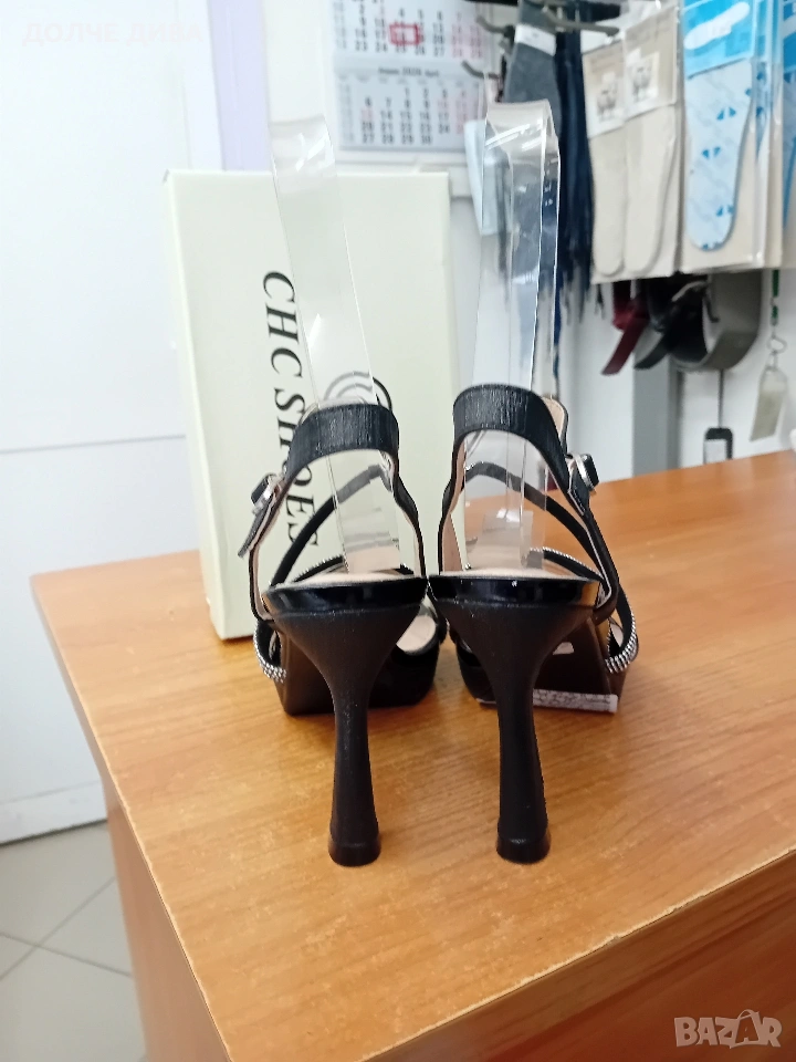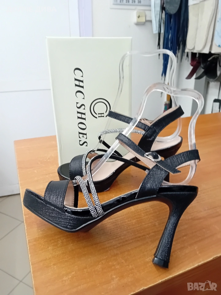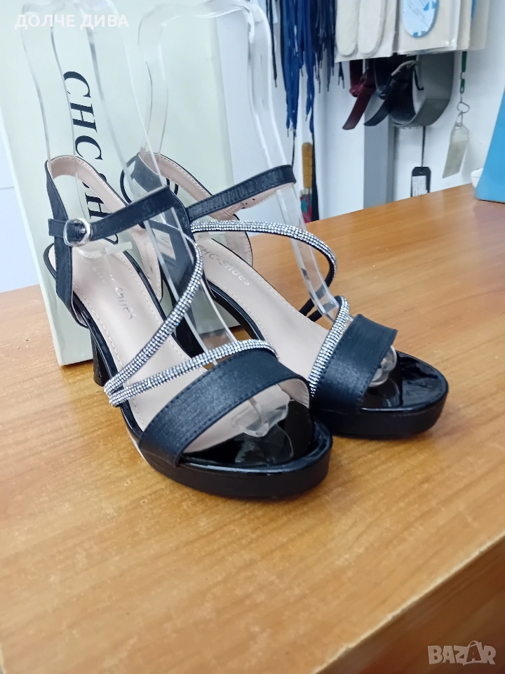 Дамски официални черни сандали на лека платформа-1см. и удобно токче 8см.За повече инфо-пишете.