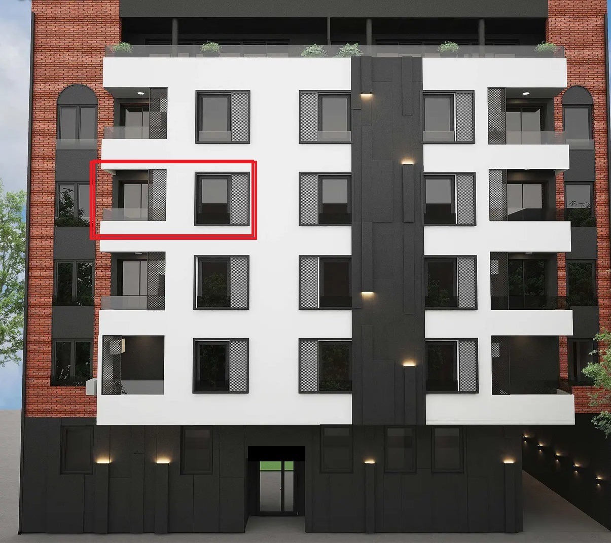 Апартамента се състои от входно антре с място за гардероб, просторна спалня, всвкидневна със зона за отдих с диван, маса и кухненски бокс, баня и тераса.