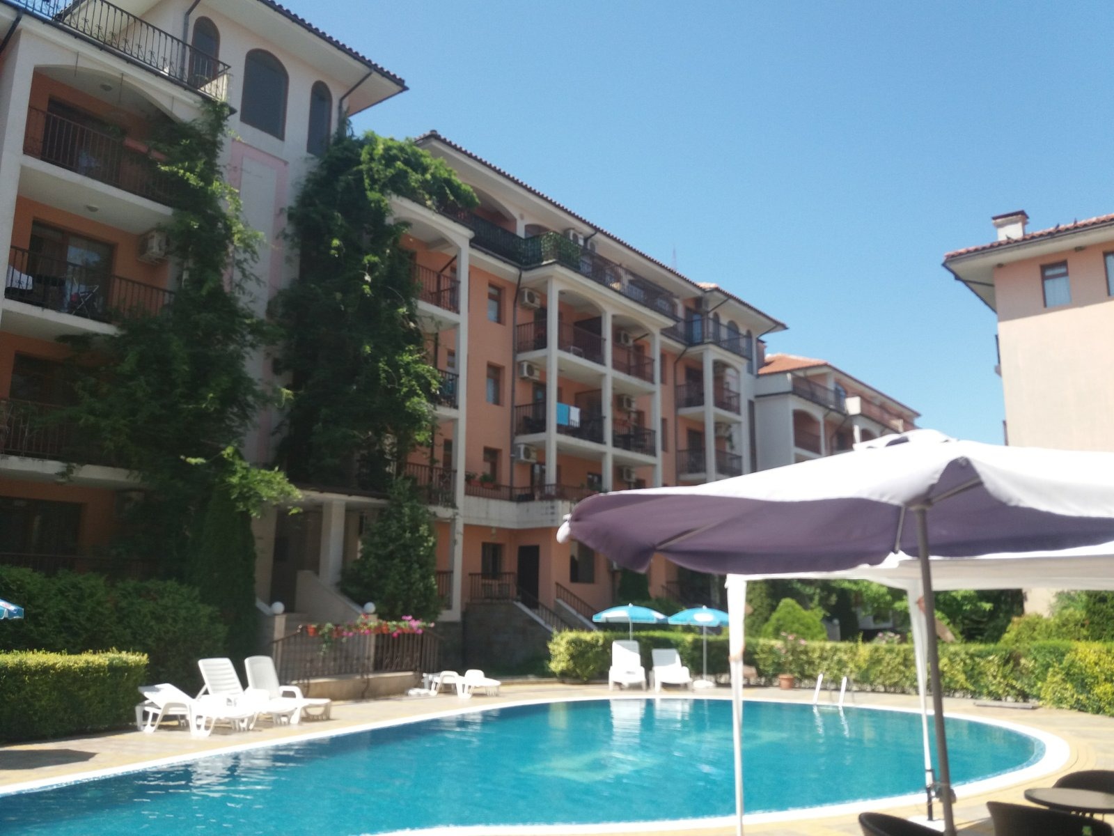 В затворен комплекс прекрасно озеленен с басейн, но НИСКА ТАКСА ПОДДРЪЖКА ОТ 4евро/м2