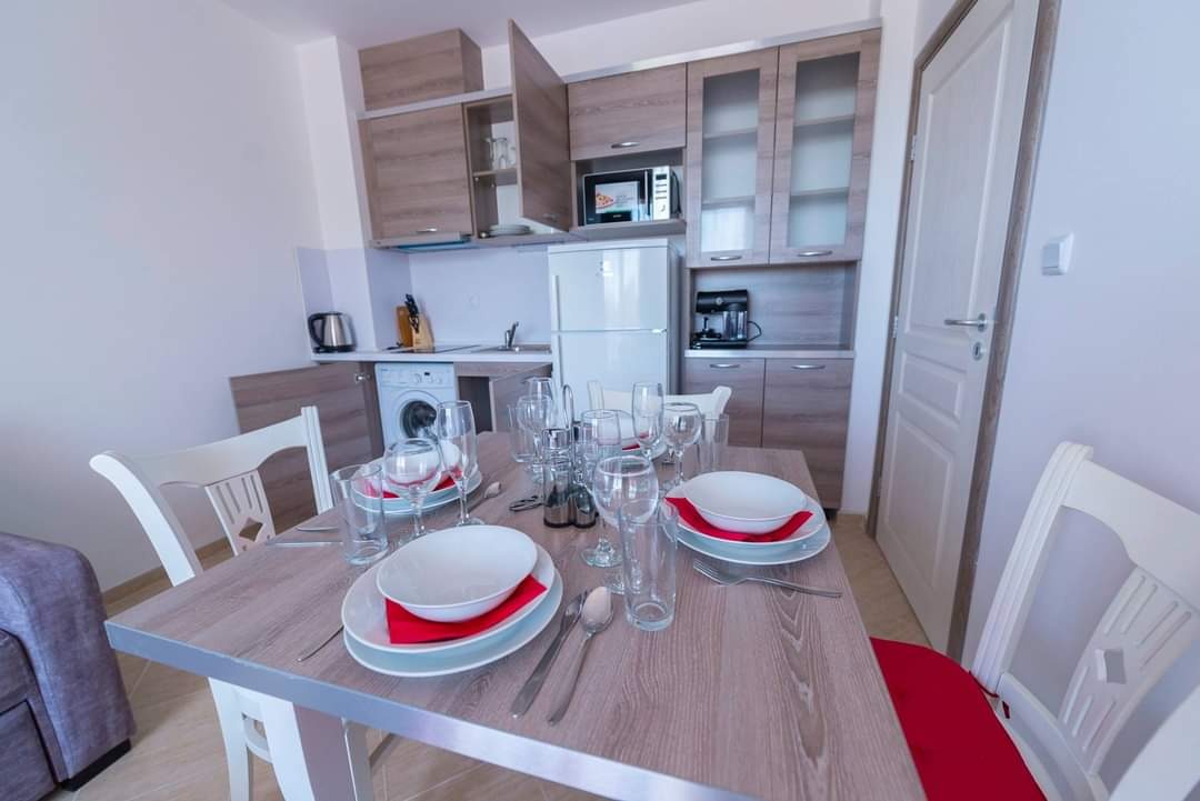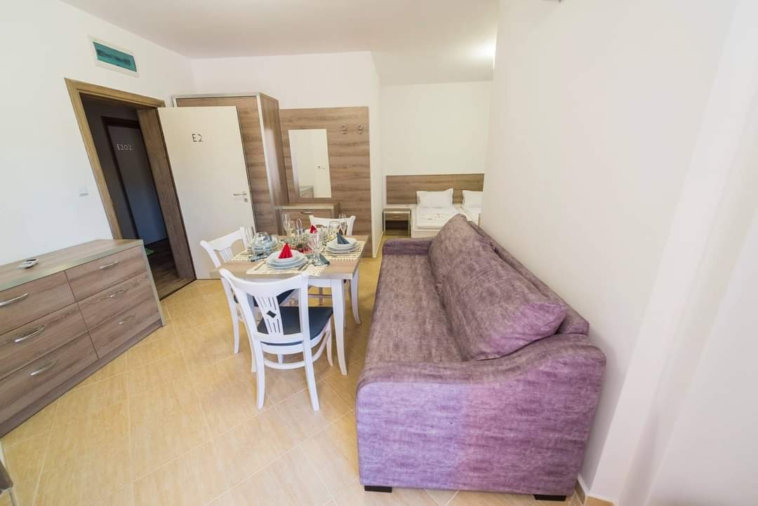 Студиото се продава на степен до степен до ключ с монtиран кухненски бокс.