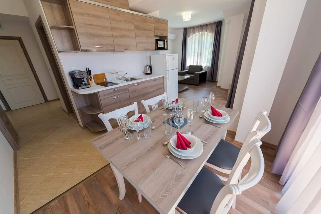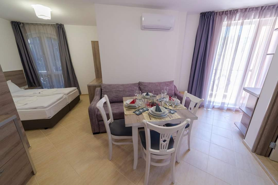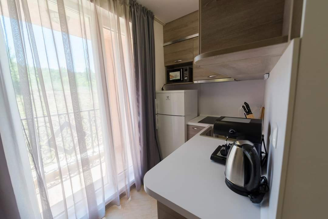 Студиото се продава на степен до степен до ключ с монtиран кухненски бокс.