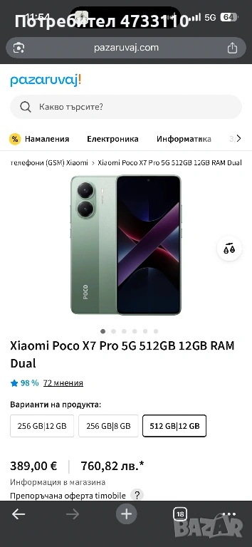 Продавам телефон с голяма вътрешна памет от 528GB. Устройството е Xiaomi x7 pro. Телефонът е много хубав , върши ми прекрасна работа и никога не съм имал проблем с него , прави много прилични снимки и се справя отлично дори в най-тежките игри , продавам го , защото си закупих друг. Телефонът се продава с оригиналната кутия , гаранция и зарядно , два калъфа и протектор на екрана . Телефонът е без никакви забележки и е ползван доста малко , батерията е в отлично състояние .