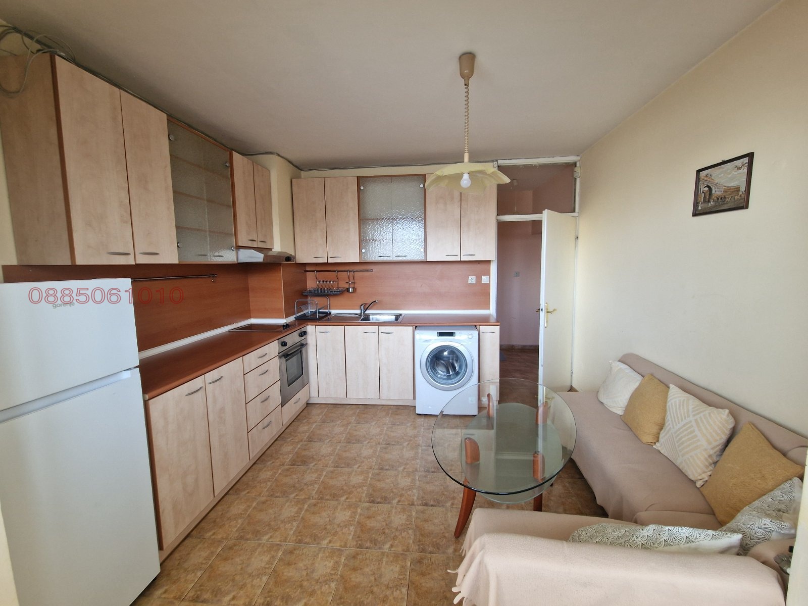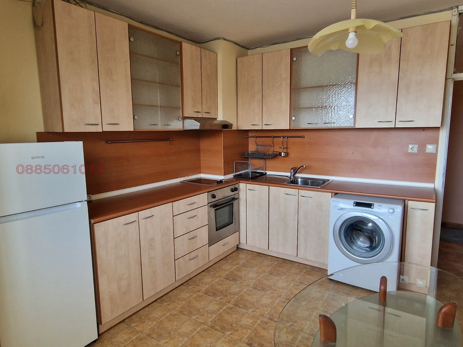 Кухня с вградени шкафове, фурна, котлони, хладилник и пералня