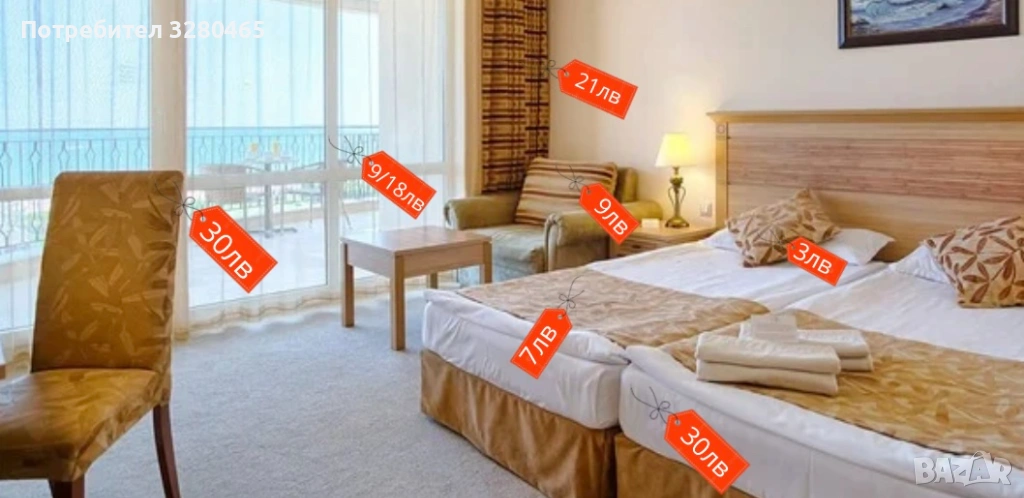 Разпродажба на мебели и текстилни изделия втора употреба - хотел Маджестик, Слънчев бряг