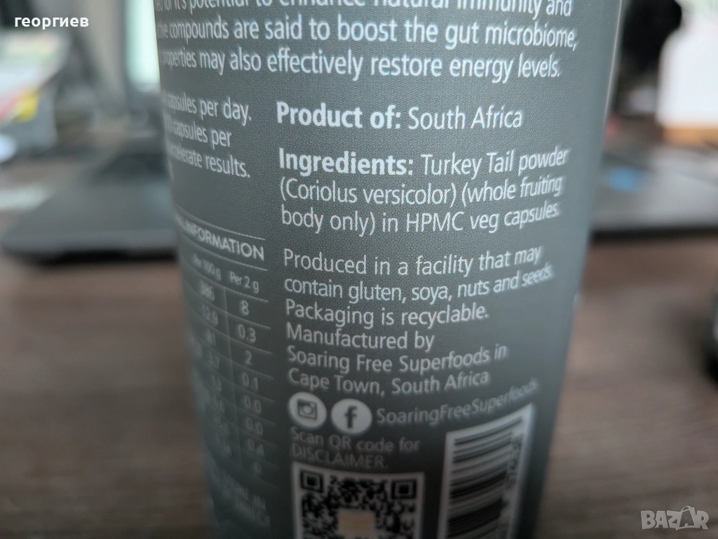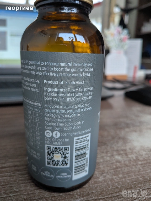 Coriolus Versicolor е специално създадена хранителна добавка от SF Cape Town - Южна Африка, която представлява мощен имуностимулатор, който повишава защитните сили и подобрява общото здраве на организма, благодарение на специалната култивирана гъбна биомаса -